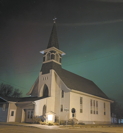Northern lights over St. John’s Lutheran Church, Okabena Minnesota, November 10, 2025